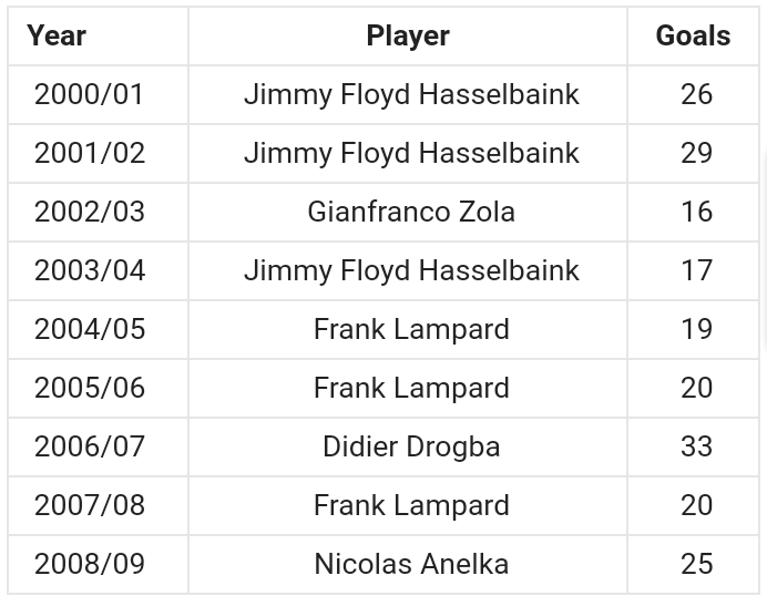 Chelsea Fc Top Scorers Of All Time All Competitions By Season Opera News Chelsea Players Premier League Era