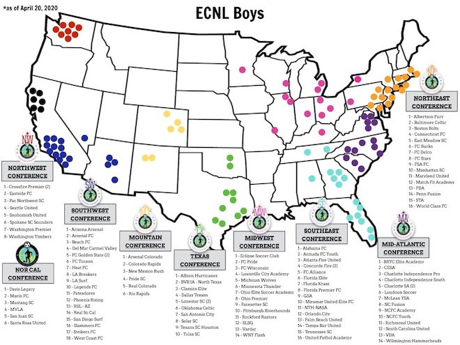 Ecnl New Conference Map For 20 21 Club Soccer Youth Soccer Premier League 2 Juledag