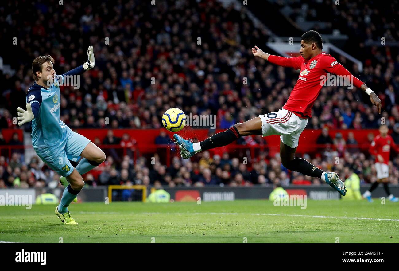 Manchester United S Marcus Rashford Scores His Side S First Goal Of The Game During The Premier League Match At Old Trafford Manchester Stock Photo Alamy Most Premier League Assists In A Single Season
